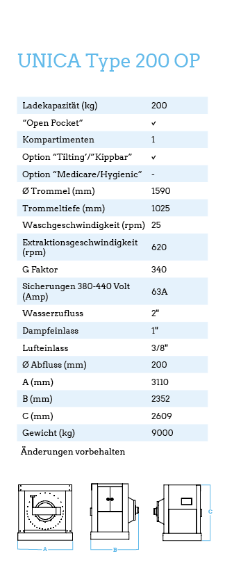 Die Open Pocket Classic-Version ist eine Maschine mit einem riesigen Einzelfach und einem Bullauge. Es eignet sich besonders zum Waschen von Teppichen und Arbeitskleidung.